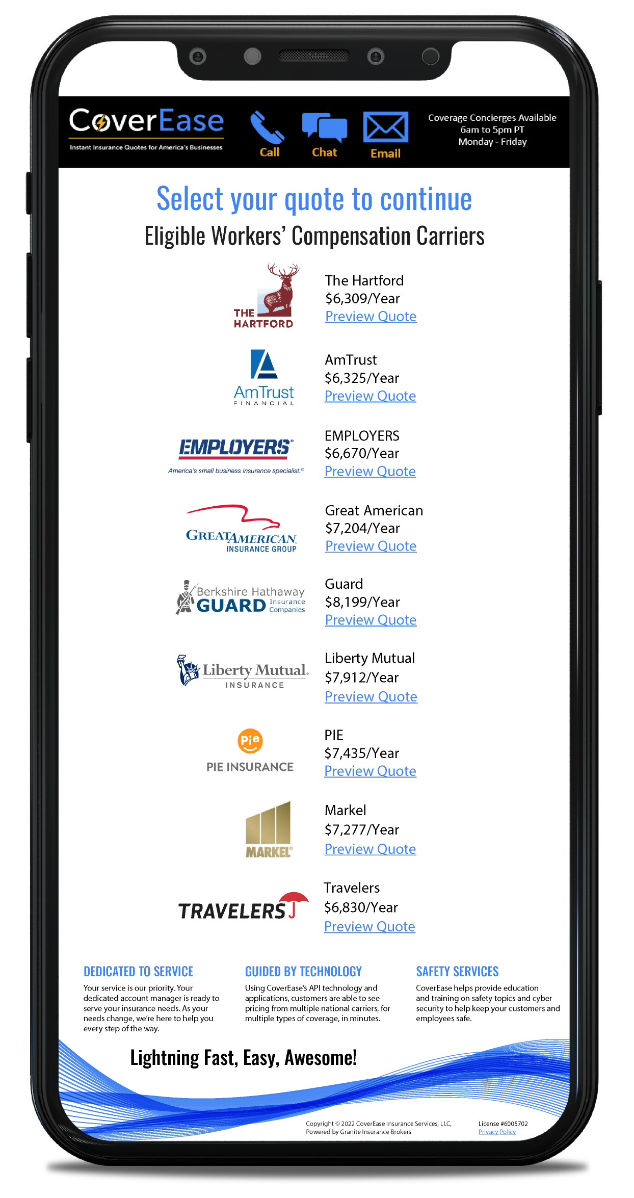 CoverEase instantly shops the insurance marketplace, finding you the right coverage at the right price. We’ve partnered with CoverEase who offers technology-driven business insurance solutions powered by live expertise. CoverEase does business insurance better than the rest. With access to 50+ insurance companies, our team of insurance experts will find you the best coverage at the best price.